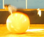 -big-ball-bouncen mit Tricks, juhu – Geräusch des Tages: überzeugendes Gnmpff, Pfbrpf kam auf einen ehrenwerten zweiten Platz – Schlappseillaufen, mit Gummibandqualitäten – das Eckige auf das Runde - Fallschirmformationstraining, wer als erster tropft, hat verloren, keiner tropft, wie schön – Drehen, viel Drehen, schneller Drehen - ups, schon wieder neue Synapsen |