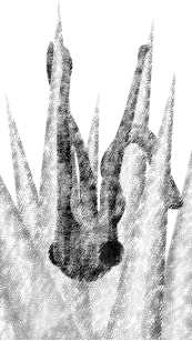 Schnelle Skizze, die wir beim ersten Zusammentreffen mit den Kuscheltaklern angefertigt haben. Die Stacheln, in denen es sich bewegt, gehören zu seinem Symbionten, einem 8 m langen, vollständig mit großen, spitzen Stacheln ausgerüsteten Lebewesen.